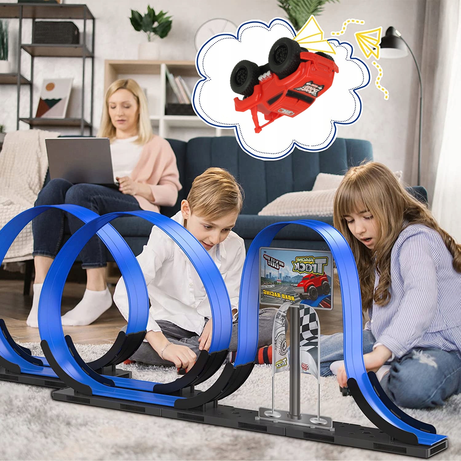 Этот предлагает все самое лучшее для автолюбителей и энтузиастов. Внутри гибких элементов пути расположены тонкие металлические рельсы, которые предназначены для притягивания магнитов, размещенных в автомобиле. Благодаря этому внедорожник прилипает к трассе, как магнит, и не падает. Автомобиль может свободно проезжать всю трассу, включая два круга на 360°.