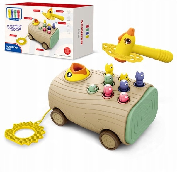Игрушка 3в1 от бренда WOOPIE — идеальный способ развития ребенка играть. Игрушка может сопровождать ребенка на первых этапах жизни. Для самого младшего ребенка идеальной функцией будет съемник. Ребенку не составит труда тянуть коляску благодаря бесшумным и не заедающим колесам. Маленьким детям также понравится функция гвоздь. В комплект входит безопасный детский молоток для забивания червей с дополнительным чехлом. Для детей постарше идеальной игрушкой станет аркада. В игре нужно ловить дятлом с магнитом червячков, спрятанных в дуплах дерева, а затем помещать их обратно в клюв птицы. Простые правила и интуитивно понятное управление облегчают игру, возможно, практически каждому. Игра обучает весело — она поможет развивать, среди прочего: баланс, моторные навыки и визуальные навыки. Игрушка представляет собой сложную задачу для малыша, требует концентрации внимания и ловкости рук, но это делает ее чрезвычайно интересной для ребенка.