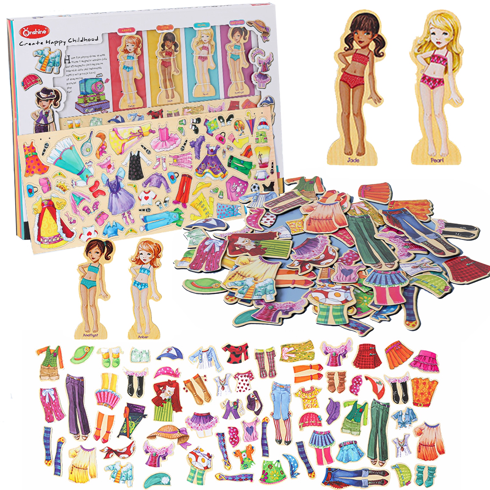 ❤ Деревянные заправки - это 4 модельные куклы и 65 магнитная одежда
