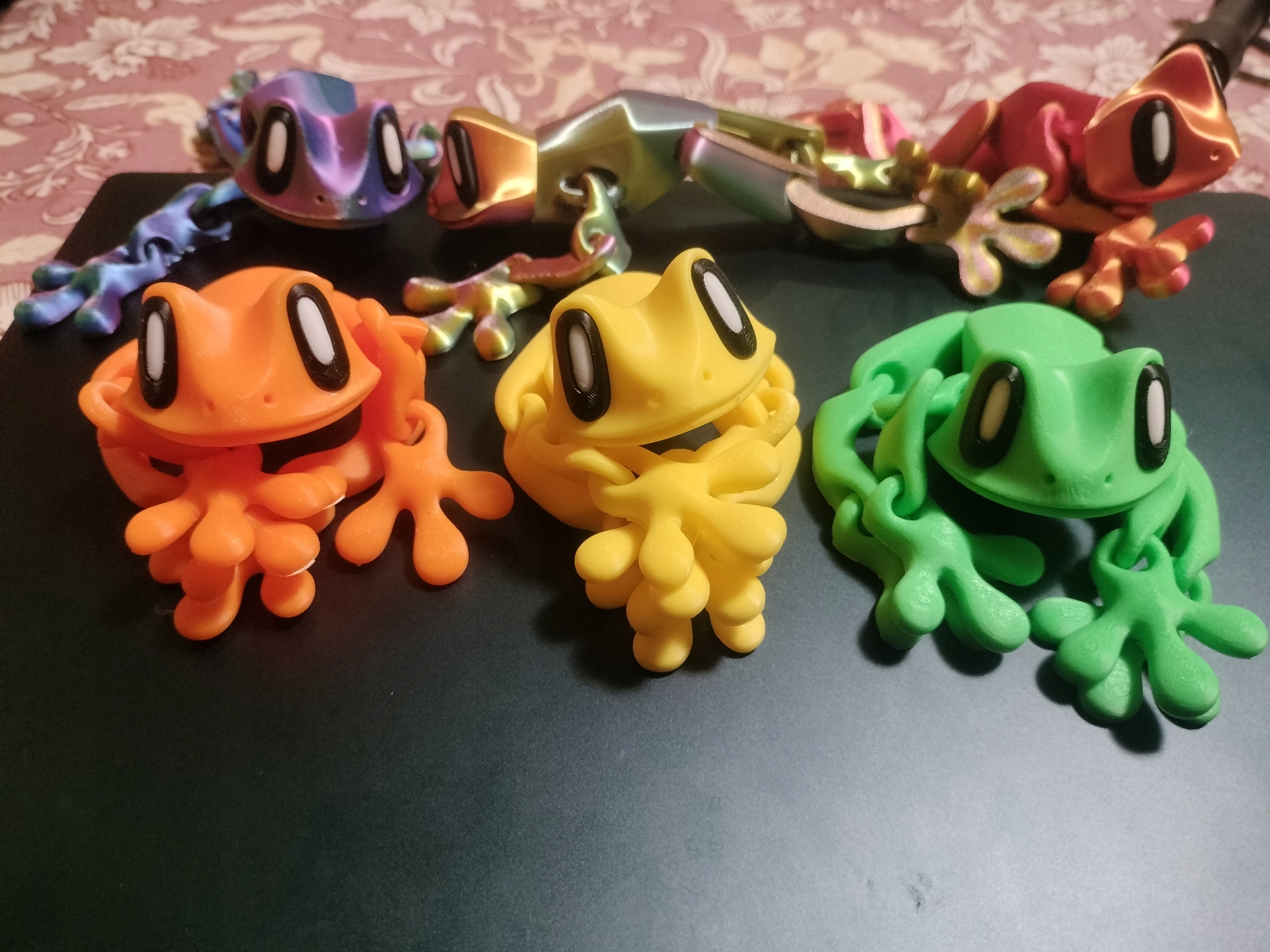 Эти очаровательные лягушки напечатаны в 3D -технологии с подвижными соединениями и вращающейся головой, которая остается в положении, в котором вы его устанавливаете, дополнительно благодаря магнитным ногам (магниты помещаются в середину лап, чтобы они могли ' T выпадаете) Вы можете смело положить лягушку на стальную поверхность, например, холодильник Полем Реалистичные детали и яркие цвета выделяют его в каждой коллекции игрушек. /p>