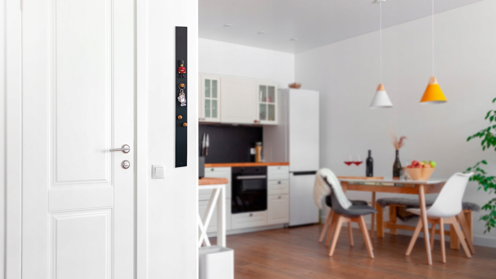 Магнитная плата может быть прикреплена к стене с использованием монтажных наборов, состоящих из дюбелей и конических винтов. Выбор типа винтов не является случайным, потому что после сборки винт скрыт под цветом наложенной панели - заглушки, а полный набор сборки прикреплен к набору.