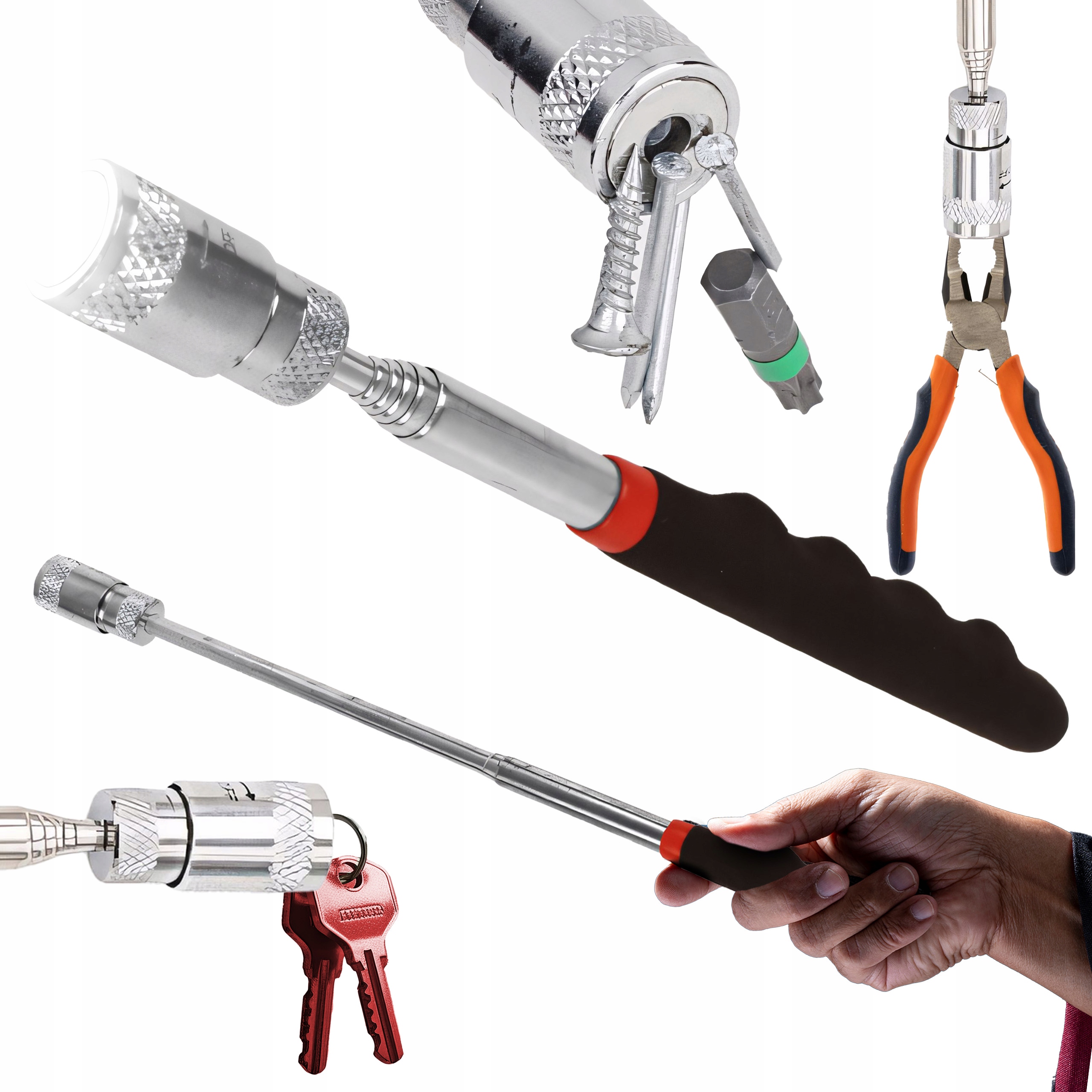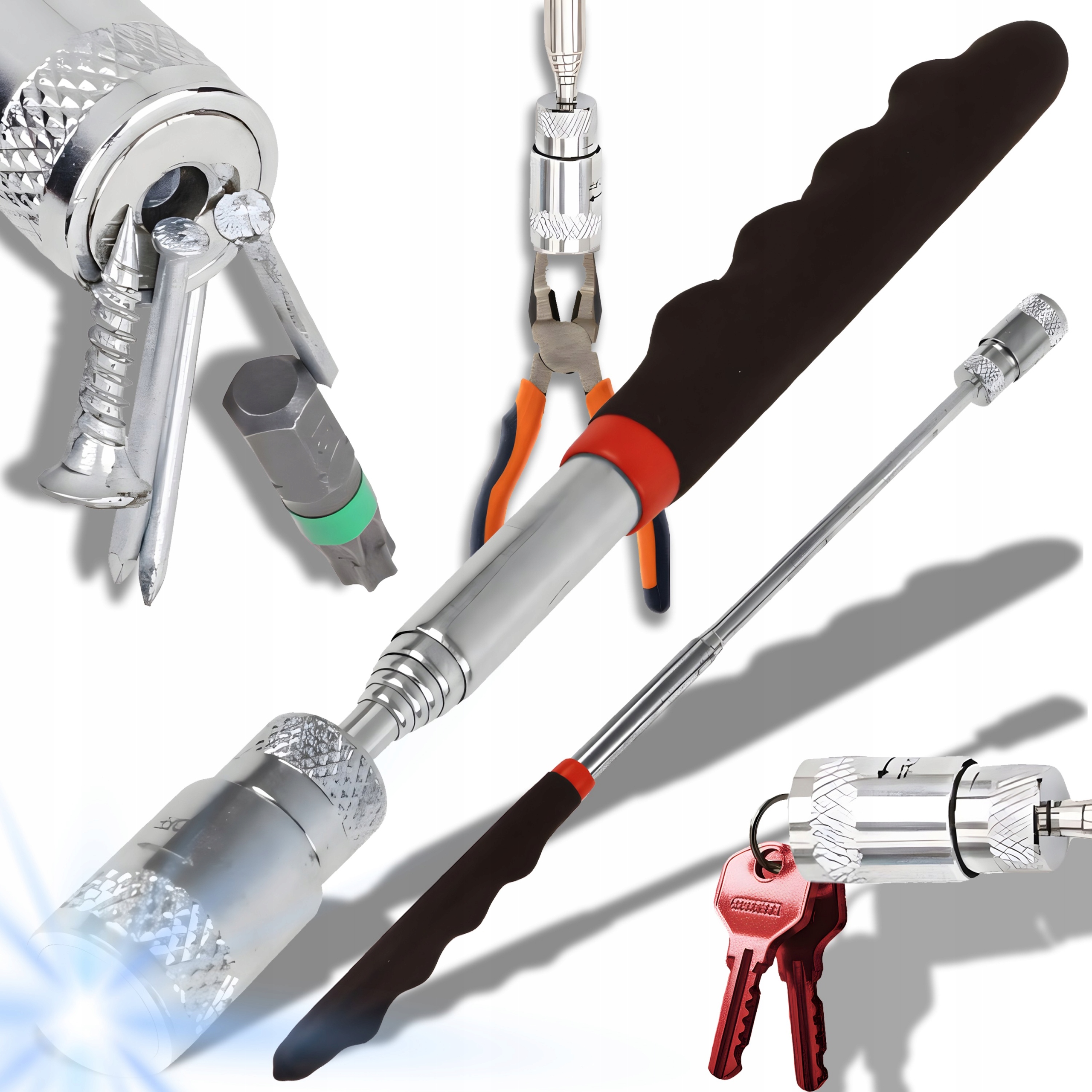 Телескопический магнитный захват с встроенным светодиодным фонариком является одним из тех инструментов, которые не только пользуются их функциональностью, но и решают много повседневных проблем . Иногда мы теряем мелкие предметы, которые впадали в трудные места или исчезали где -то под мебелью. К счастью, магнитный захватчик со светодиодом - это решение, которое приходит на нашу помощь. Благодаря телескопическому дизайну, он позволяет вам достичь дальше. Вы можете легко найти небольшие металлические предметы, такие как винты, гайки, высокие каблуки или клавиши