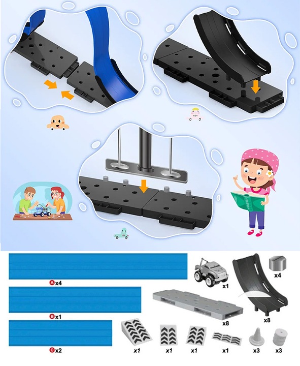 Маленькие конструкторы самостоятельно создают эпические автомобильные трюки и мчатся по построенным трассам, используя интегрированную систему, которая позволит им развлекаться без ограничений!