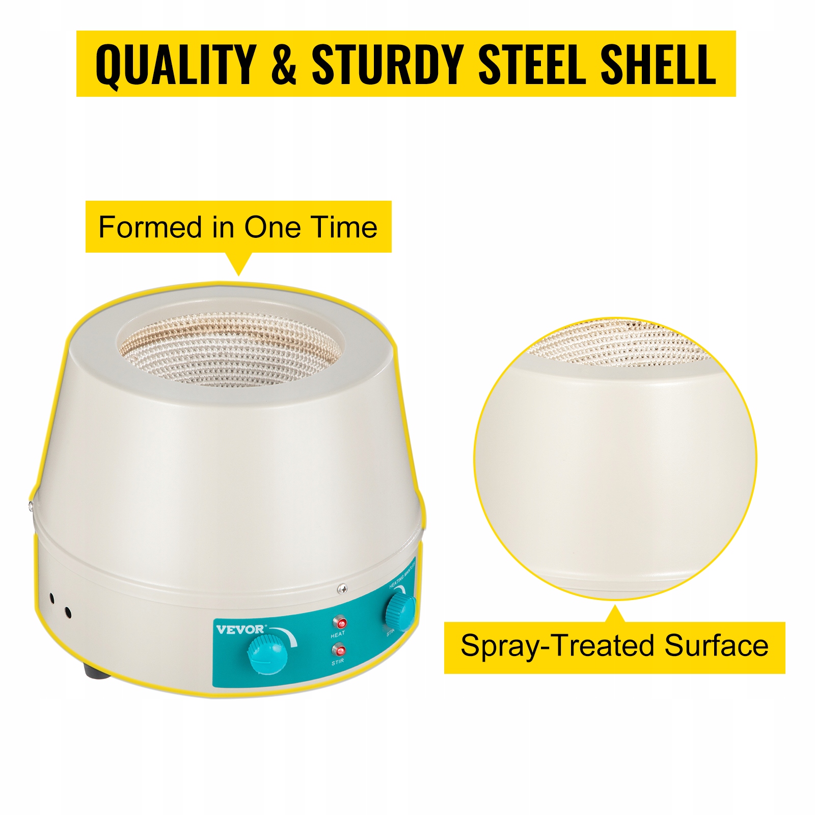 Оболочка магнитной мешалки изготовлена из чрезвычайно прочного и высококачественного стального листа, холоднокатаного и однократно формованного. Кроме того, поверхность обработана распылением, что обеспечивает устойчивость к ржавчине и исключительную долговечность для длительного использования.
