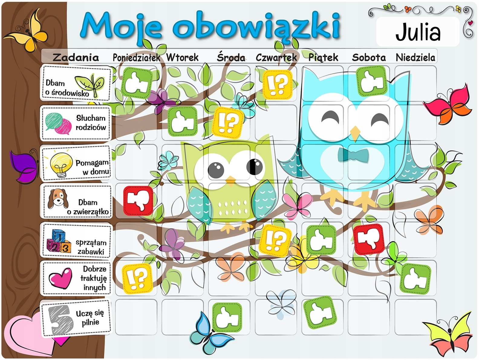 - даёт возможность использовать систему поощрений за выполненные обязанности (например, за определенное количество зелёных пальцев в неделю)