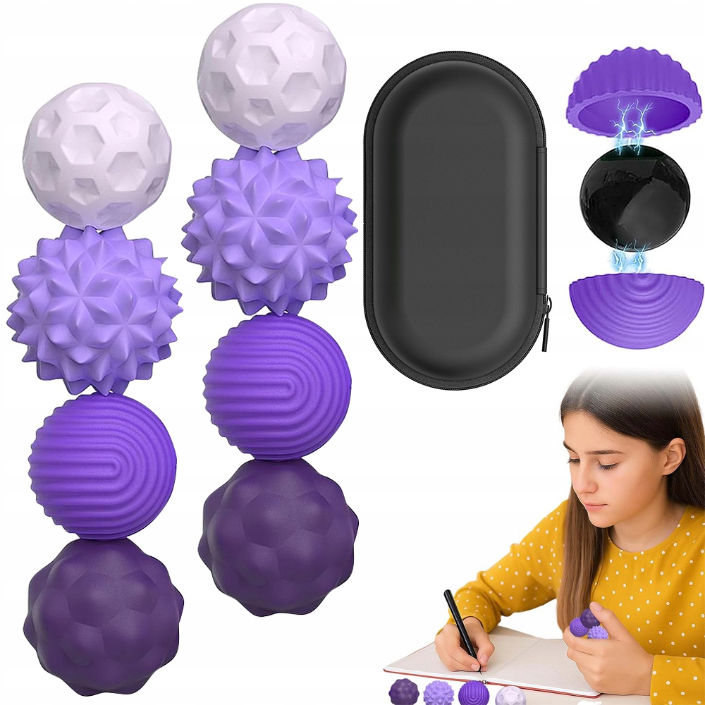 - 8 силиконовых магнитных сенсорных шариков и футляр. Магнитные шарики легко чистятся, долговечны и компактны.