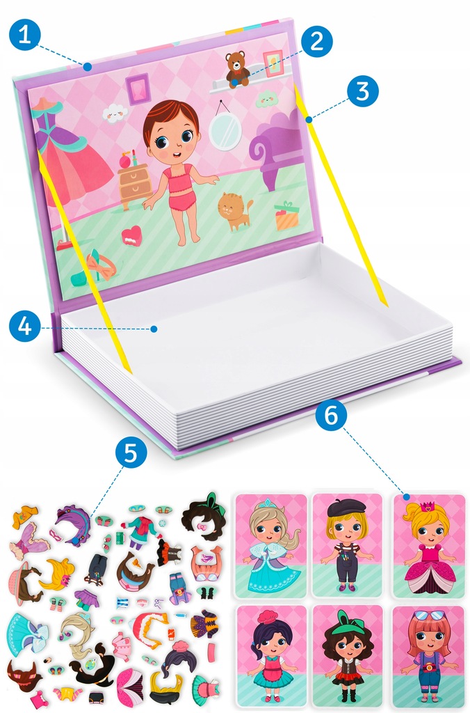 - Пакет содержит магнитный фон для склеивания элементов девичьего гардероба, также выполняет функцию хранения.