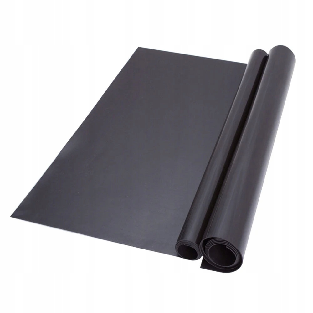 Черная магнитная фольга с клеем называется гибким магнитом. Он изготовлен из ферромагнитного порошка и термопластичного связующего материала.