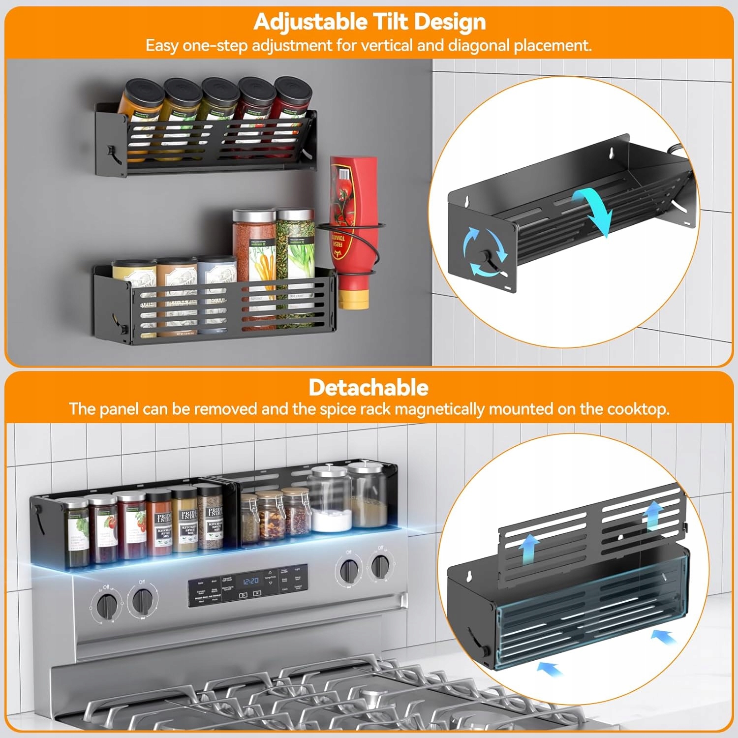 Эта подставка для специй может быть прикреплена к любому магнитному устройству (например, холодильник, микроволновая печь, духовка, стиральная машина, стиральная машина, сушилка и кофеварка). Просто выньте панель с стойки специй и поверните магнитную поверхность, чтобы прикрепить ее к кухонной тарелке. Кроме того, магнитные полки холодильника оснащены винтами, которые можно использовать для прикрепления подставки для специй к стенам кухни, ванных комнат, прачечной и кладовой.