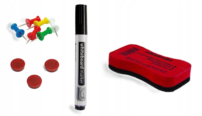 В комплект входит монтажный набор, полка для маркеров и колпачки