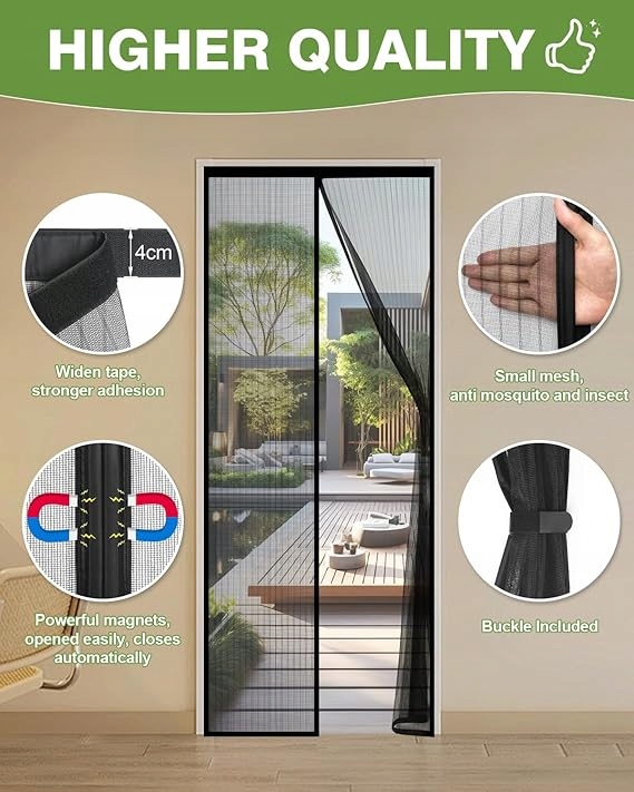 - Улучшенная москитная сетка для дверей 2025 — не нужно ни сверления, ни инструментов: магнитная москитная сетка для балконных дверей со сверхпрочной клейкой лентой и кнопками адаптируется ко всем типам рам — независимо от того, деревянные это рамы, металлические или ПВХ. Просто измерьте, приклейте и наслаждайтесь, наконец, отсутствие насекомых, защита в любой жизненной ситуации.