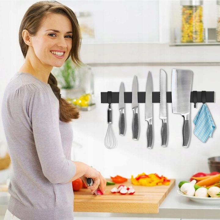 Сильный магнит: встроенные сильные магниты обеспечивают безопасное хранение ножей, ножниц, отверток и других металлических инструментов, защищая их от случайного падения.