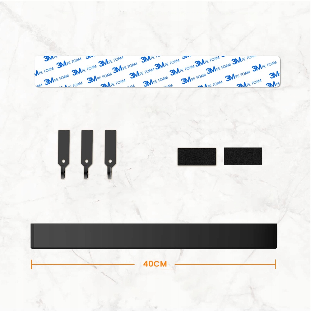 🔪Экономия места -Этот держатель для ножей длиной 40 см обеспечивает место для нескольких кухонных принадлежностей, экономя место на кухне. Он также имеет три съемных крючка, которые позволяют легко хранить другие неметаллические инструменты, сохраняя при этом порядок на рабочем месте. Найдите идеальное место для хранения этого компактного держателя для ножей и освободите больше места в своей столовой.