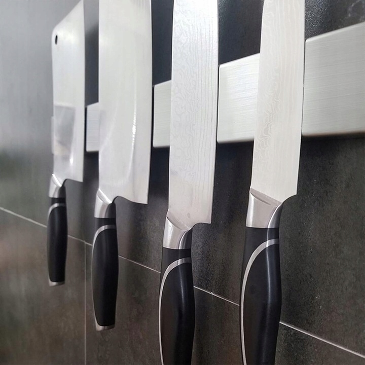 - Универсальный магнитный держатель для инструментов: этот магнитный держатель для ножей будет работать не только на кухне, но и в офисе, гараже, подвале или мастерской, обеспечивая порядок и удобство хранения инструменты.