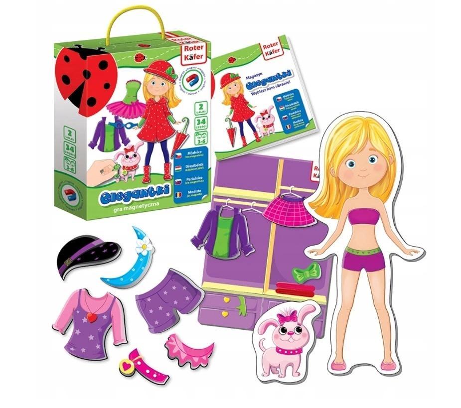 Магнитная игра «Элеганты» представляет собой набор трехмерных магнитов, которые доставят увлекательное развлечение маленьким стилистам. Разложите магнитные пазлы на специальной доске или другой поверхности.