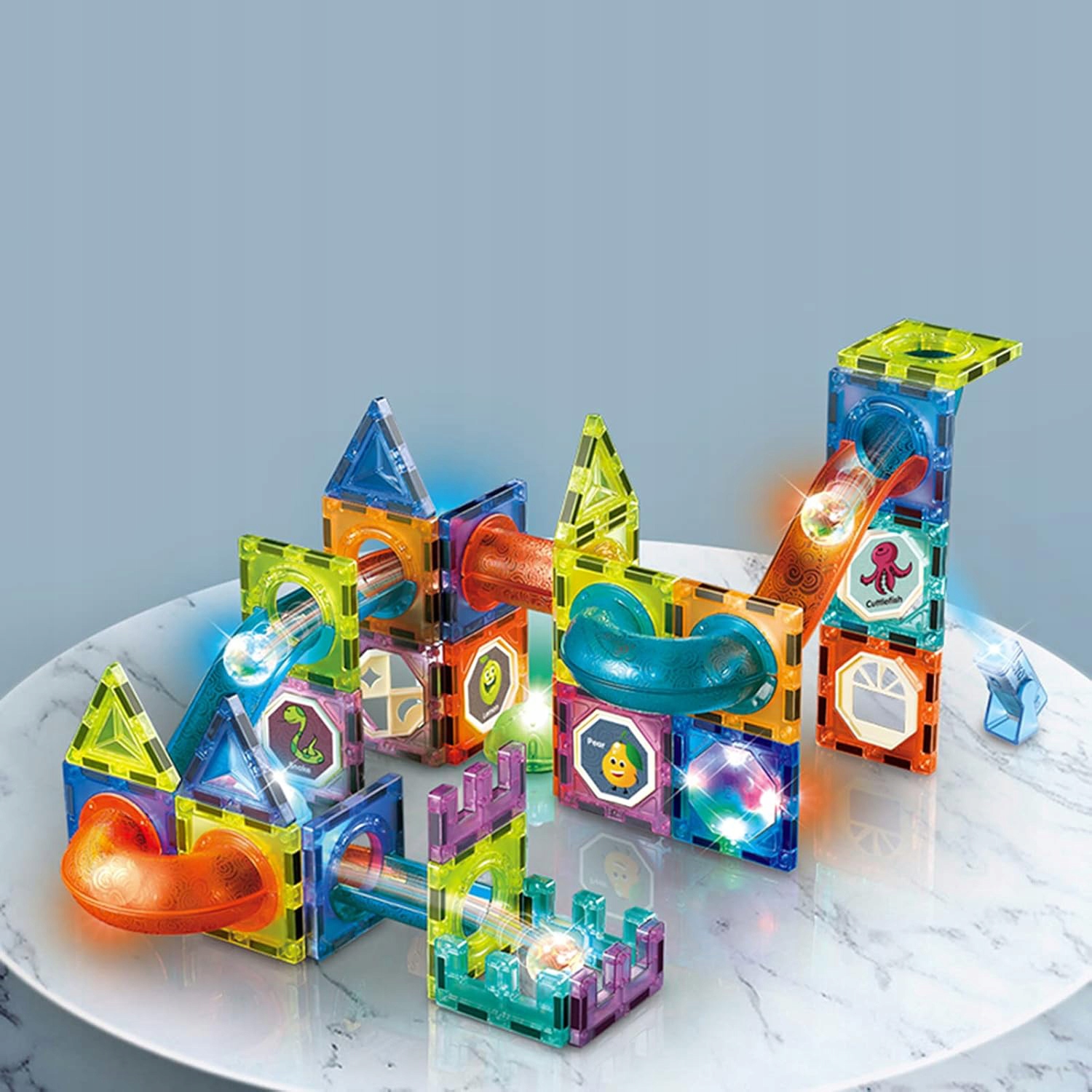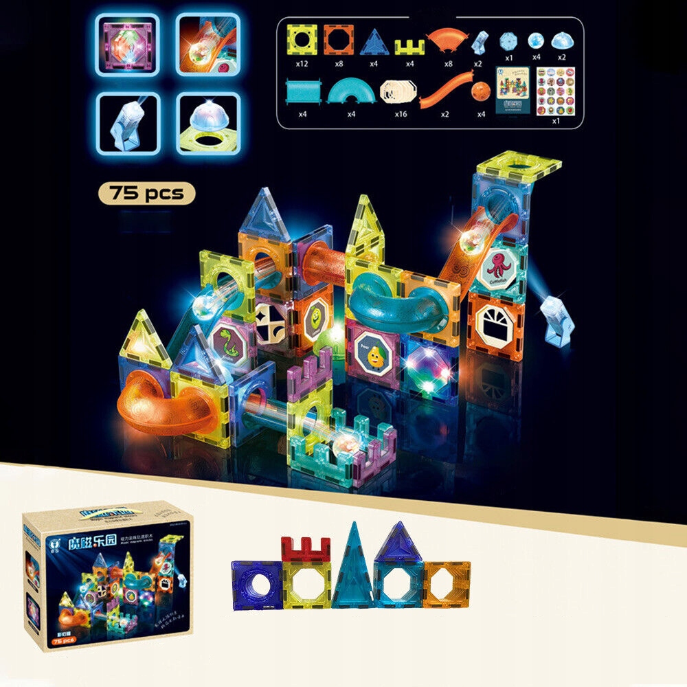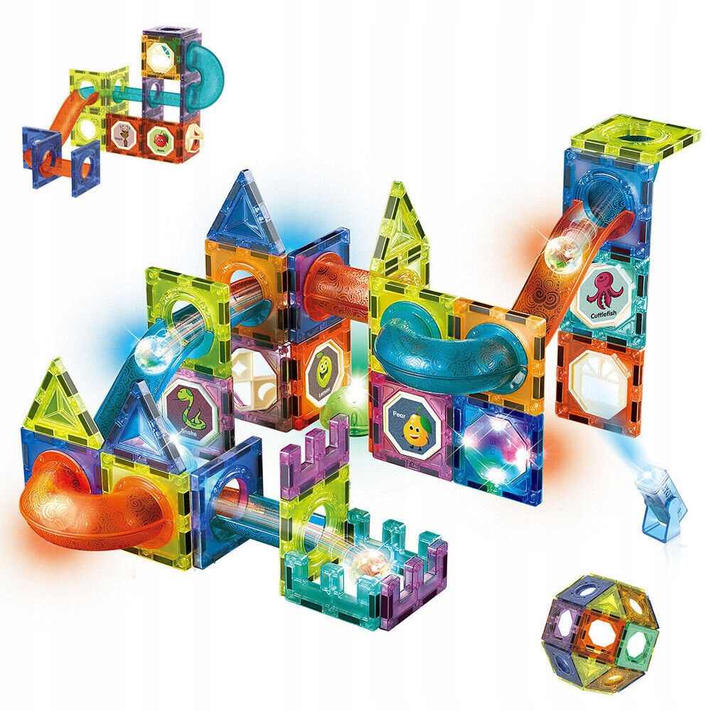 В отличие от традиционных магнитных блоков, наша игрушка из магнитного мрамора имеет новый дизайн. Оснащен трубками, различными комбинациями света, разноцветными шариками, наклейками с буквами и блестящими шарами, которые дополняют простую концепцию и добавляют больше веселья и творчества.