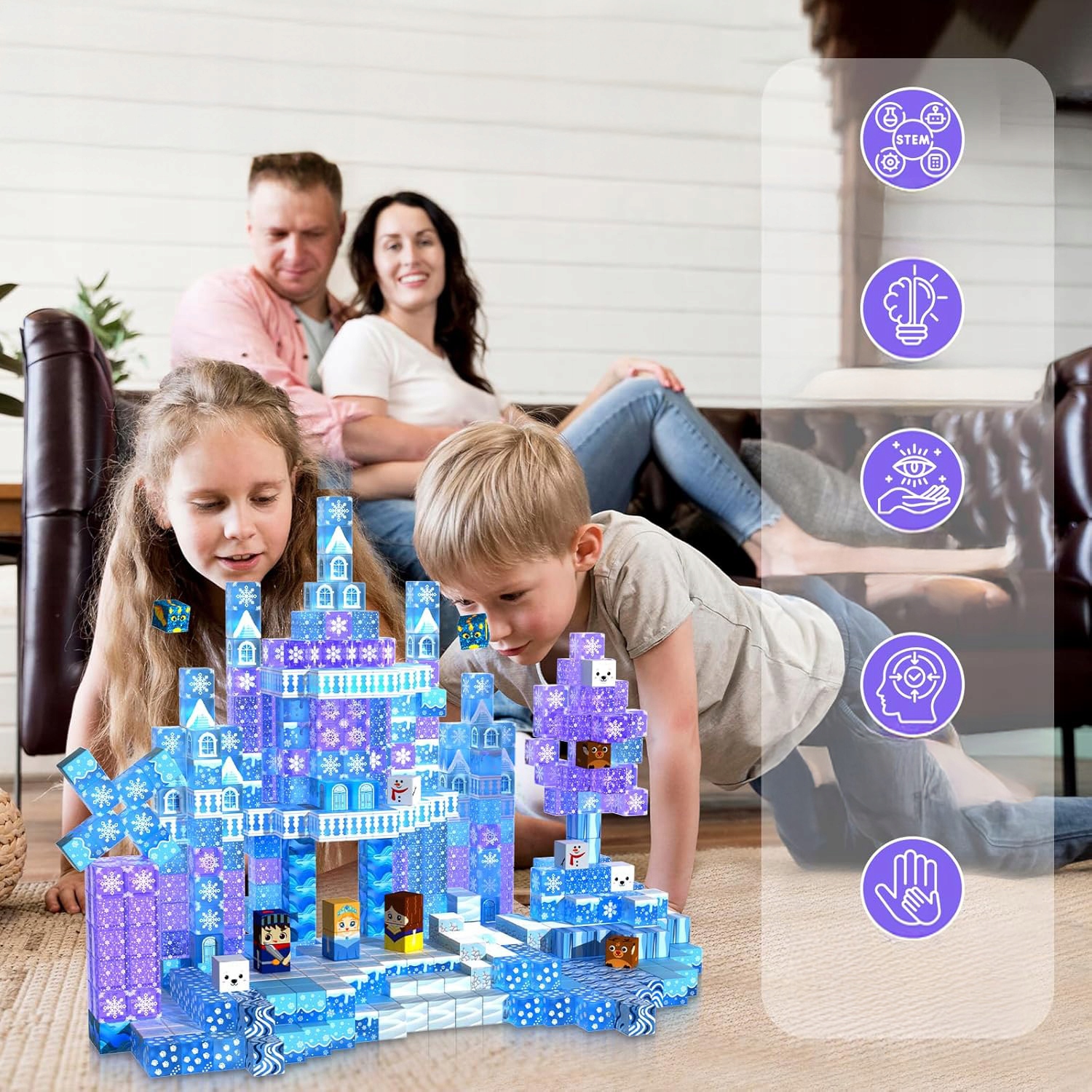 ❄️❄️МАГНИТНЫЕ КОНСТРУКТОРЫ - 100 ЭЛЕМЕНТОВ МАГНИТНЫЕ КОНСТРУКТОРЫ ДЛЯ ДЕТЕЙ 3-12 ЛЕТ, НАБОР МАГНИТНЫХ КОНСТРУКТОРОВ ДЛЯ СТРОИТЕЛЬСТВА ЛЕДЯНЫХ И СНЕЖНЫХ ЗАМКОВ, МАГНИТНЫЕ КОНСТРУКТОРЫ ДЛЯ ДЕВОЧЕК И МАЛЬЧИКОВ ДЛЯ ВОЗРАСТА 3+, ПОДАРОК НА РОЖДЕНИЕ НА РОЖДЕСТВО❄️❄️