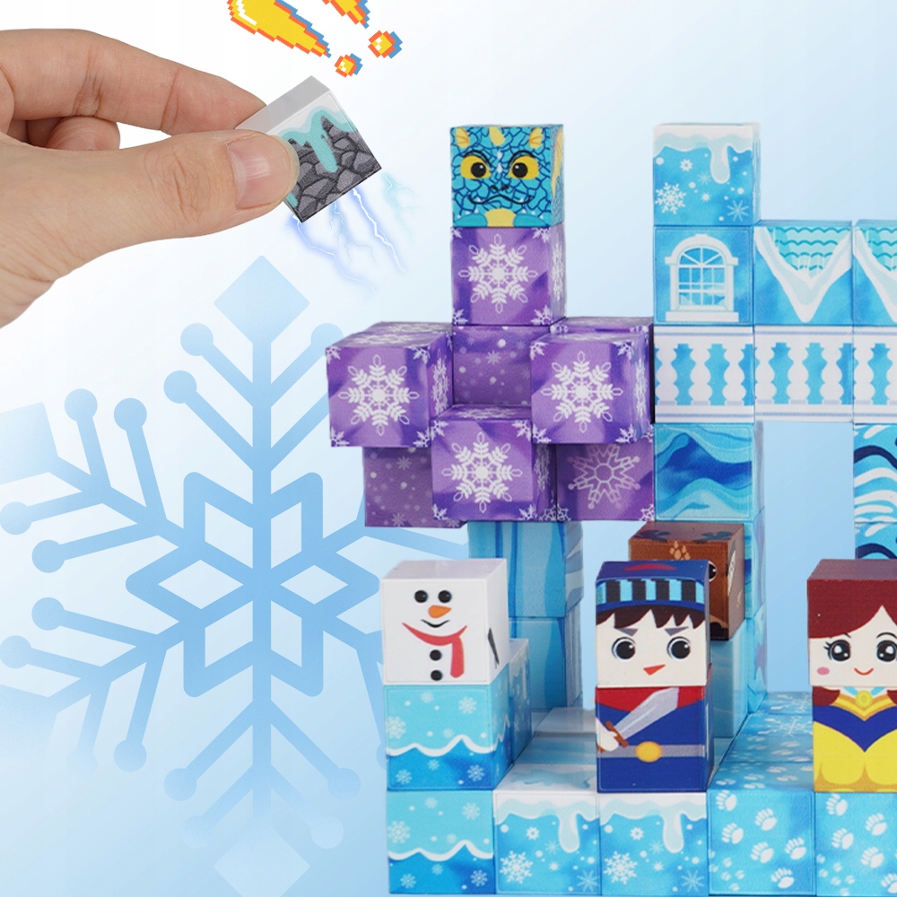 Прозрачные ледяно-голубые магнитные кубики позволяют детям создавать свои собственные замки, сверкающие башни, ледяные мосты и волшебные дворцы принцесс. Наблюдайте за развитием их воображения, когда они создают пейзажи своей мечты.