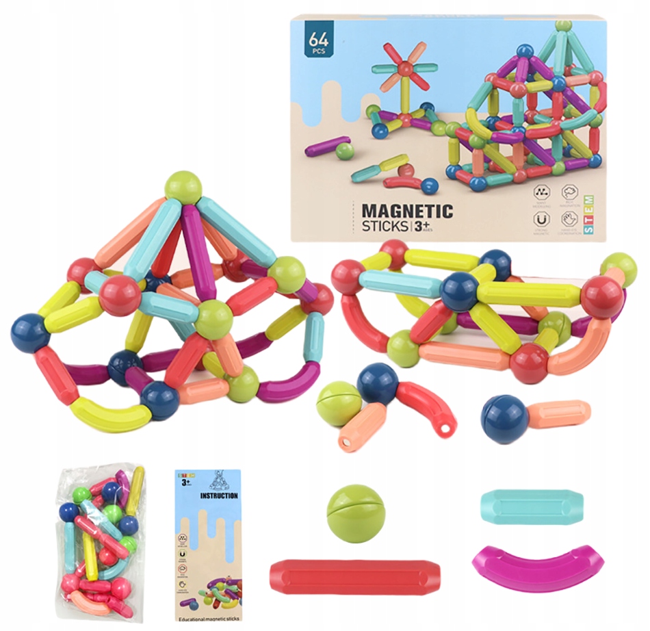 МАГНІТНІ БЛОКИ 64 шт. Набір цеглинок RAINBOW