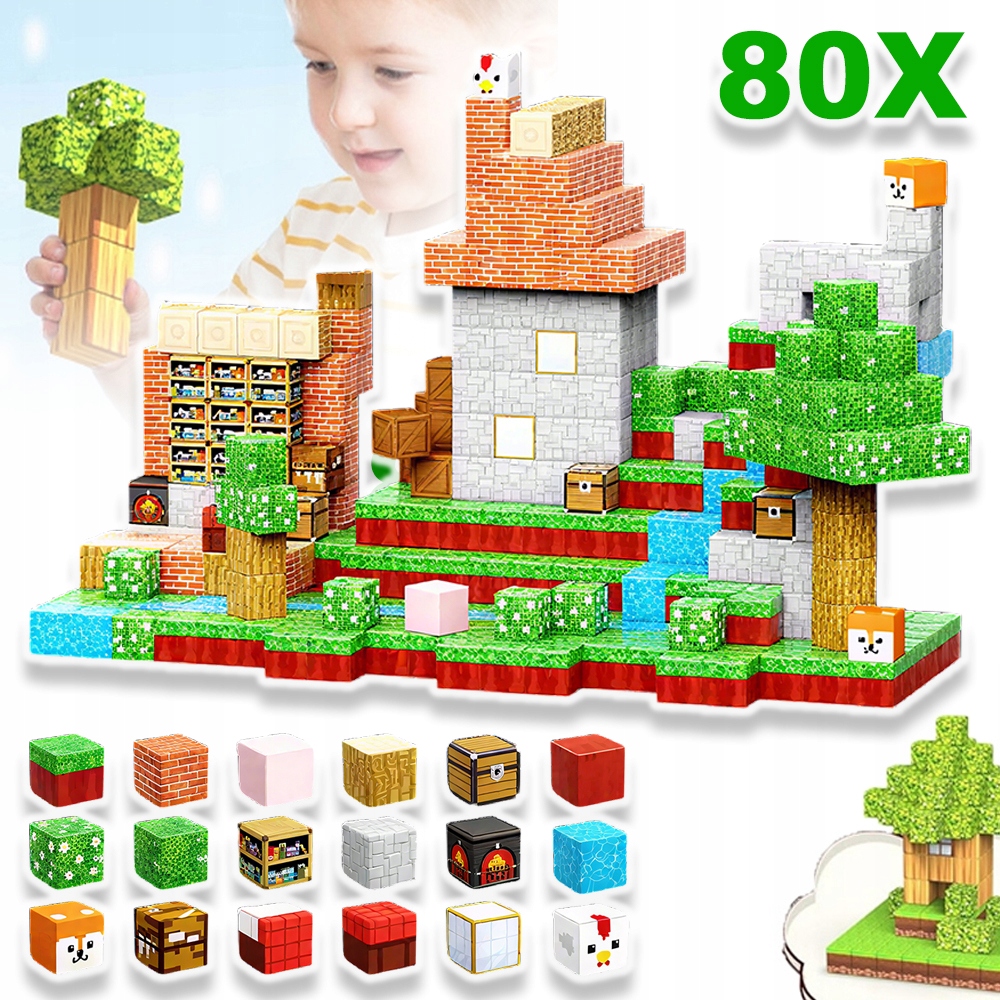 МАГНИТНЫЕ БЛОКИ 80 ШТ. ИГРУШКИ МОНТЕССОРИ МАГНИТНЫЕ СТРОИТЕЛЬНЫЕ КОНСТРУКТОРЫ