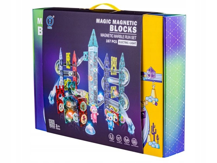 Разноцветные магнитные блоки — это игрушка, которую вы можете сконструировать и построить самостоятельно. Набор состоит из множества красочных деталей и позволяет построить дорожку для шариков любого расположения. Игрушка, которая превратит ребенка в маленького архитектора, стимулирует воображение и поможет развить строительные навыки.