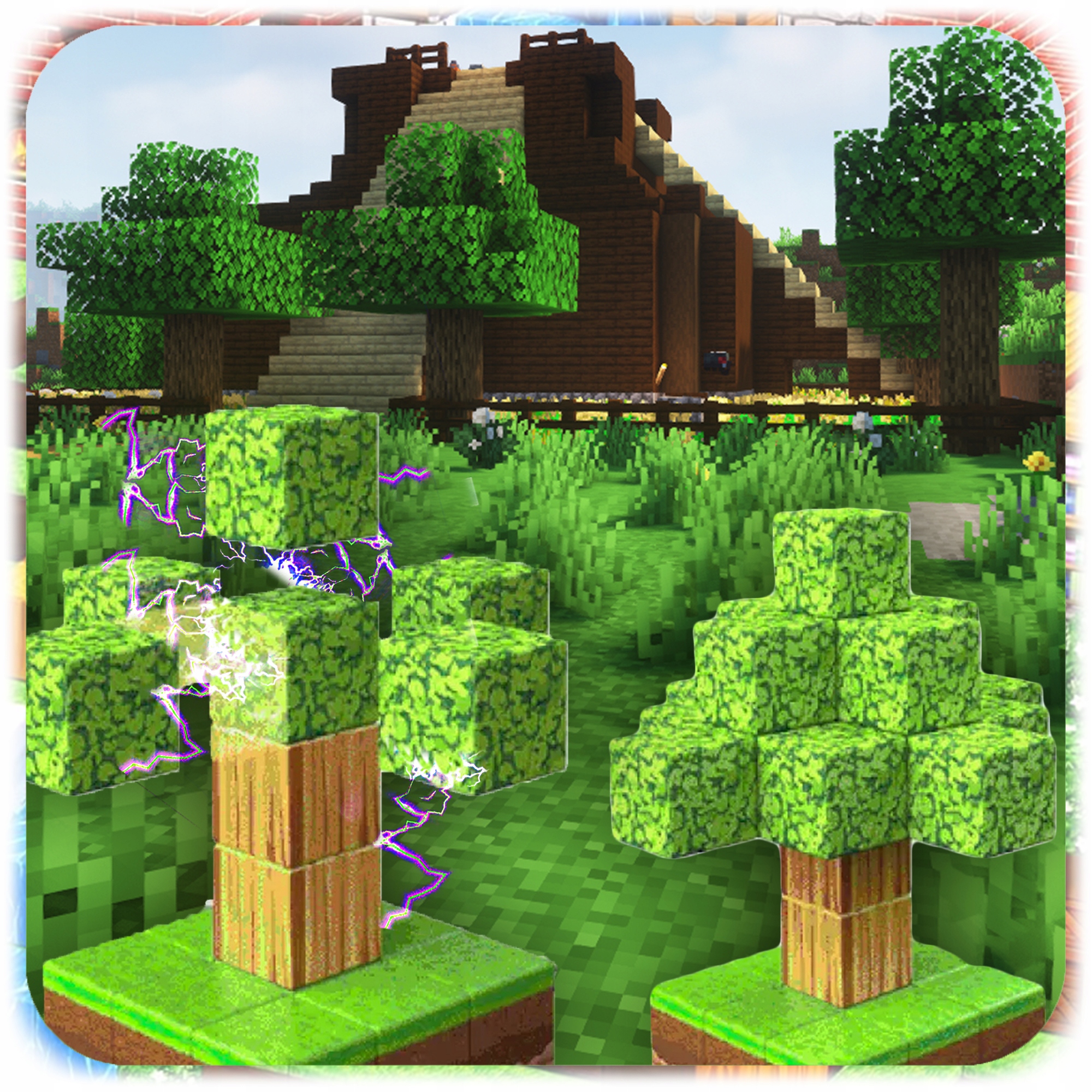 ✔️ Целых 144 блока различных цветов и фактур (земля, дерево, кирпич, листья, камень, вода, стекло).