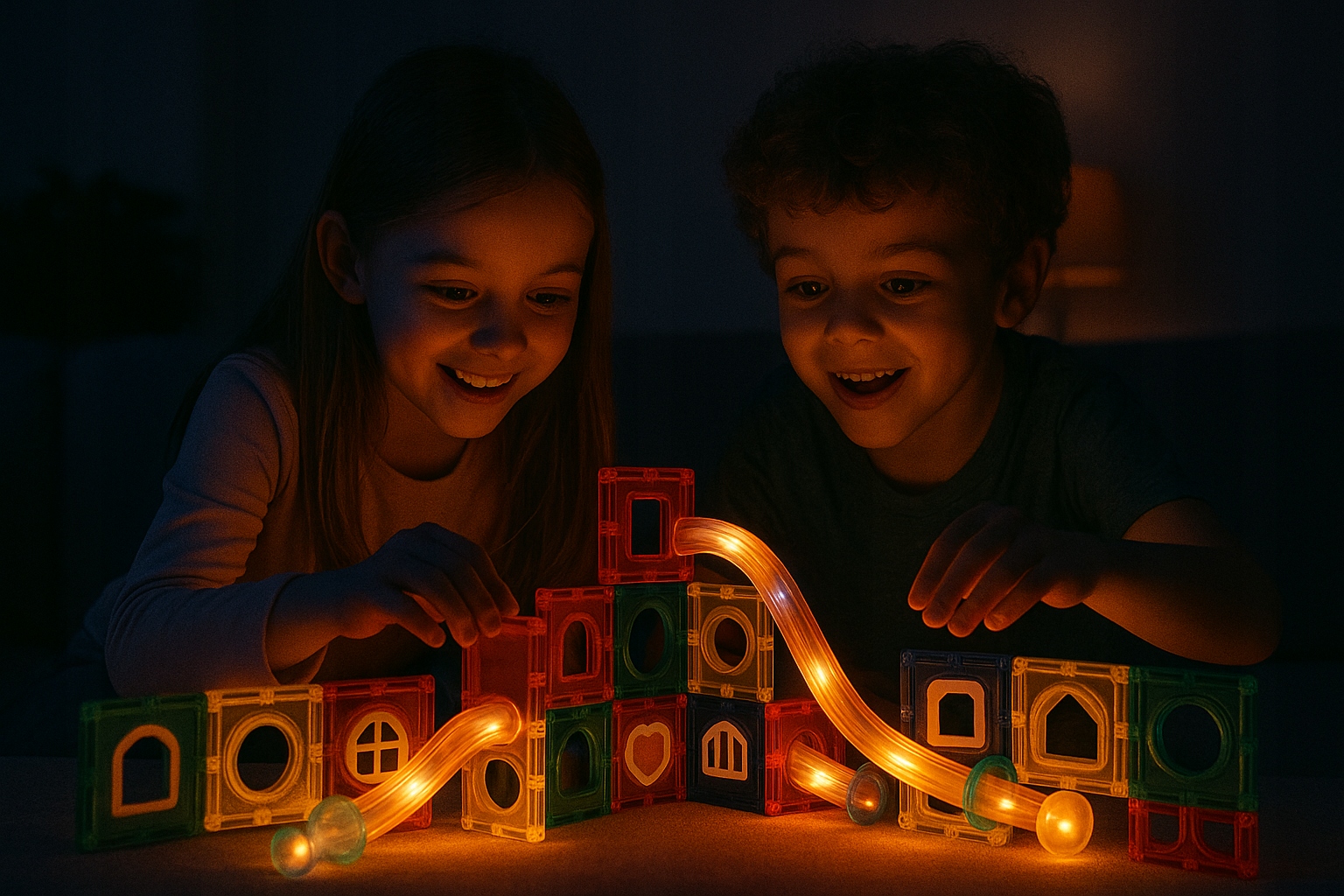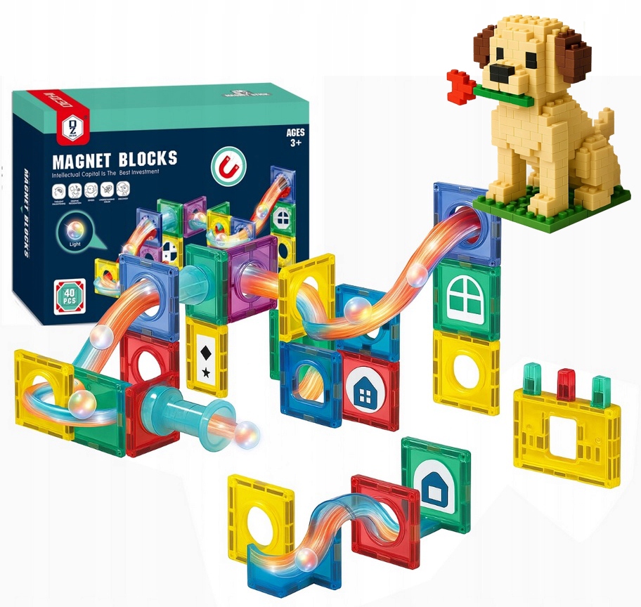 Магнитные блоки – это инновационная развивающая игрушка, сочетающая в себе творчество, обучение и безграничные возможности конструирования. Каждый набор состоит из различных форм – квадратов, треугольников, арок, трубок и световых модулей – изготовленных из прочного полупрозрачного материала ярких, привлекательных цветов. Мощные, безопасные магниты, встроенные в стены, позволяют детям легко объединять элементы в устойчивые конструкции и в то же время быстро разделять их, развивая мелкую моторику и умение распознавать формы.
