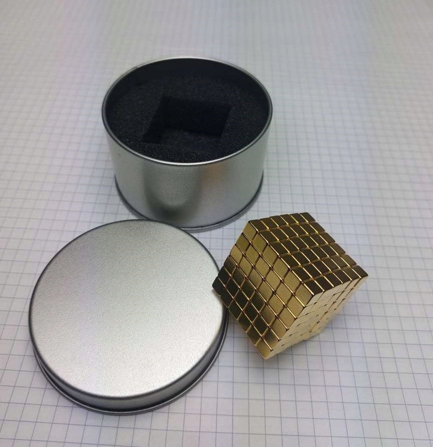 В набор входит 216 намагниченных позолоченных кубиков размером 5х5мм и элегантная металлическая коробочка.