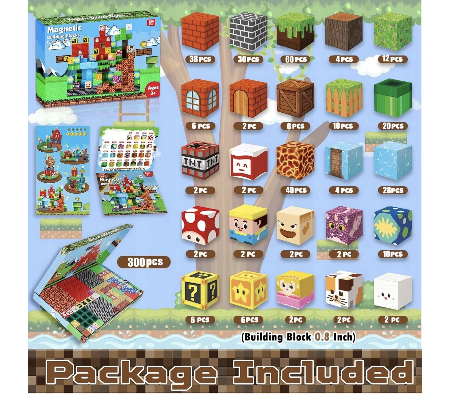 МАГНИТНЫЕ БЛОКИ ПРИКЛЮЧЕНЧЕСКАЯ ИГРА ЗАМОК 3D БЛОКИ КУБ ДЕТСКИЙ 300 ШТ.