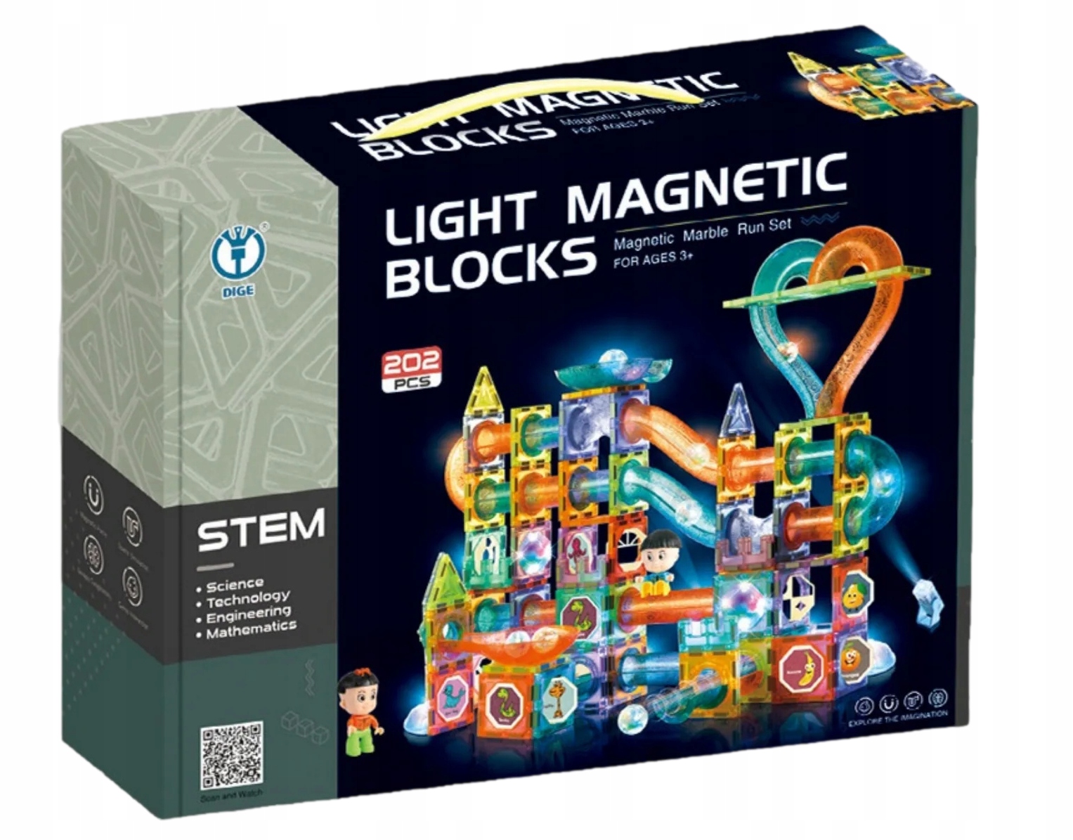 СВЕТЯЩАЯСЯ МАГНИТНАЯ ДОРОЖКА / КУЛОДРОМ - КОНСТРУКЦИОННЫЕ БЛОКИ, НАБОР XXL, 202 элемента
