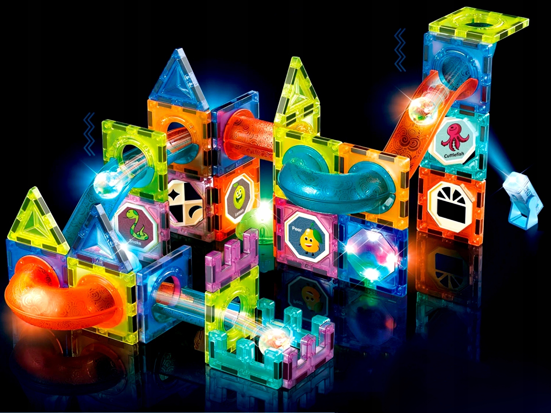 Новейшие светящиеся магнитные блоки обеспечивают бесконечное удовольствие от компоновки, конструирования и конструирования.