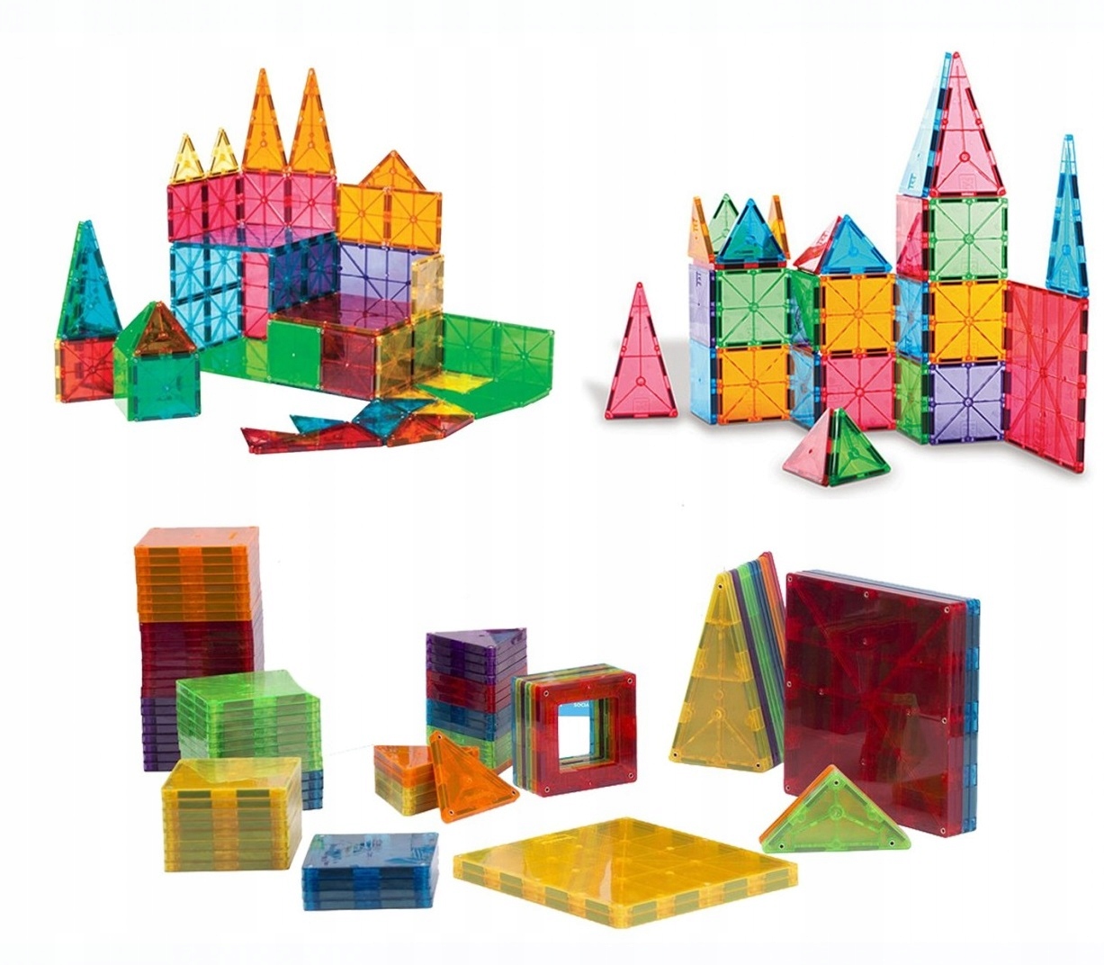 Кирпичики с магнитами позволяют создавать множество конструкций. Их цвет и окраска, напоминающая стекло, побуждают к игре и позволяют играть с дневным светом и фонариками. Плитка изготовлена из приятного на ощупь материала, удобного для детских рук. Отдельные элементы соединены по краям безопасными магнитами, что упрощает сборку.