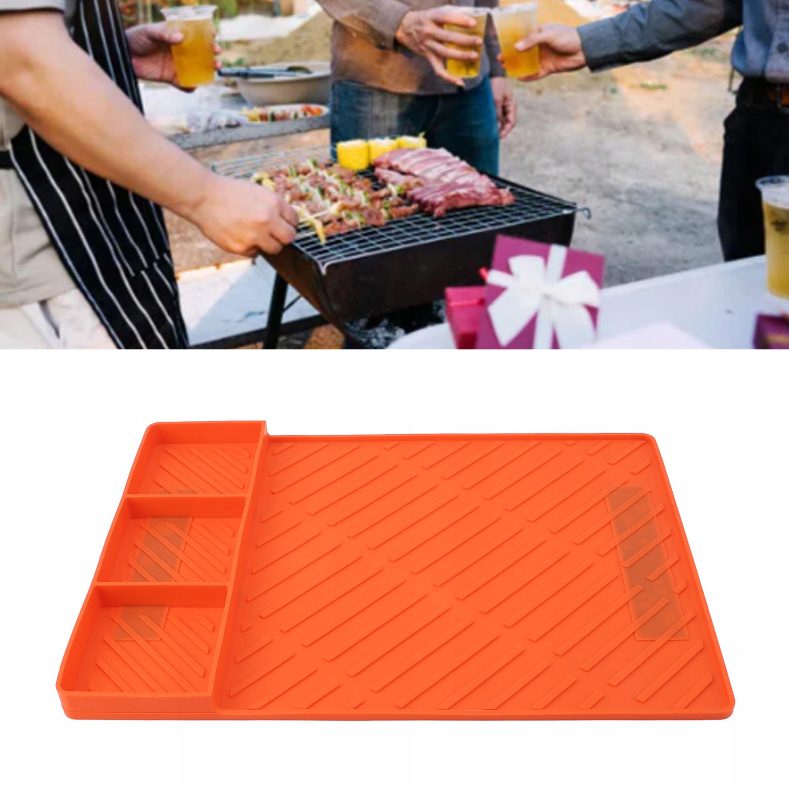 2. Он защищает гриль и кастрюлю: коврик обеспечивает боковую подставку и капельный поднос, который эффективно защищает гриль и кастрюлю от утечек масла и остатков пищи, что делает чистку намного проще.