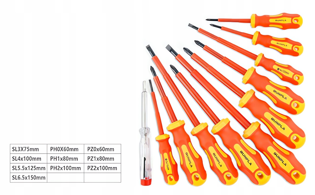 ➡ 11-часовой изолированный набор отверток содержит все необходимые отвертки для работы с электрическими установками и другими техническими проектами
