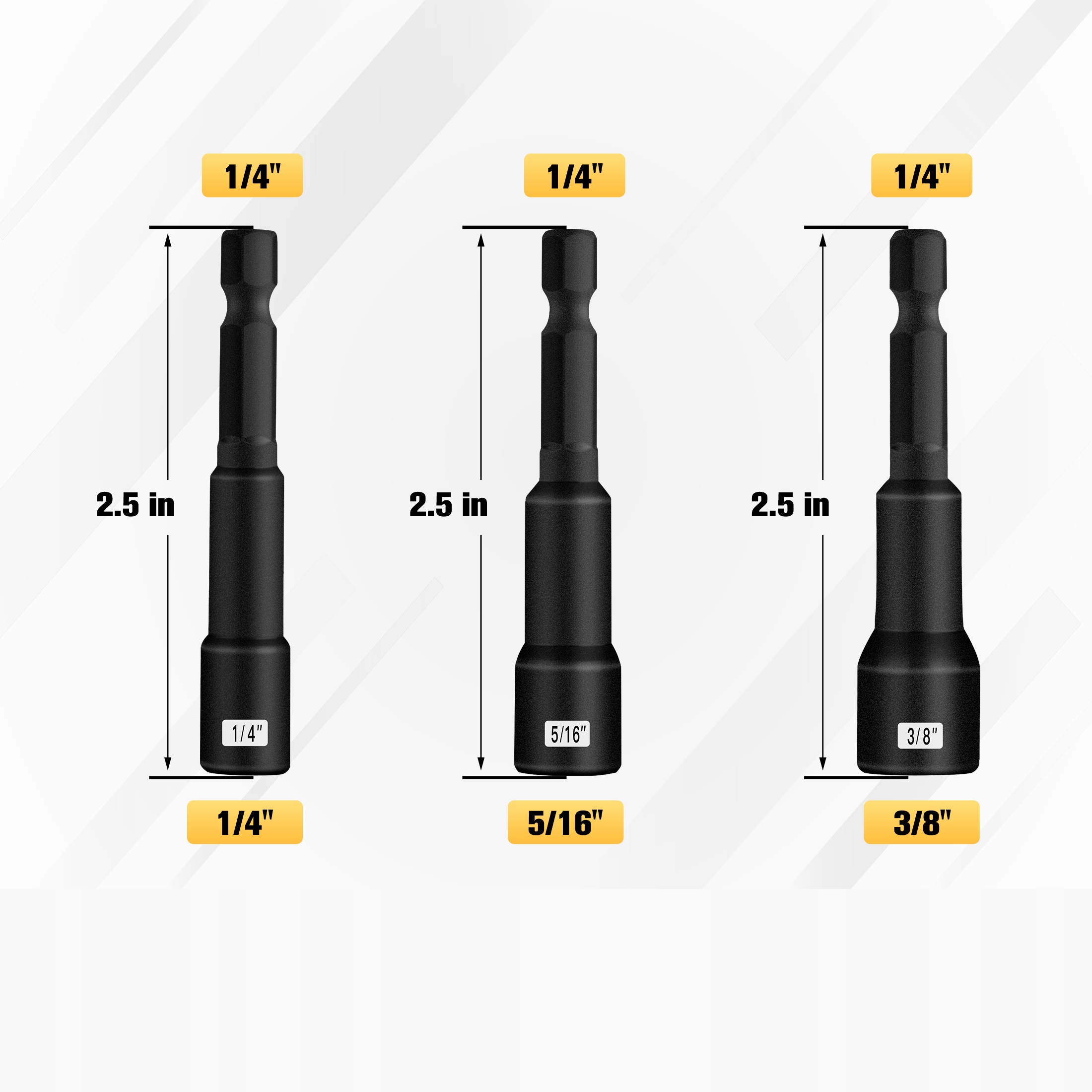 В комплект входят 3 размера: 1/4", 5/16", 3/8".