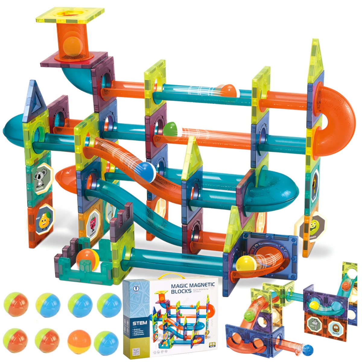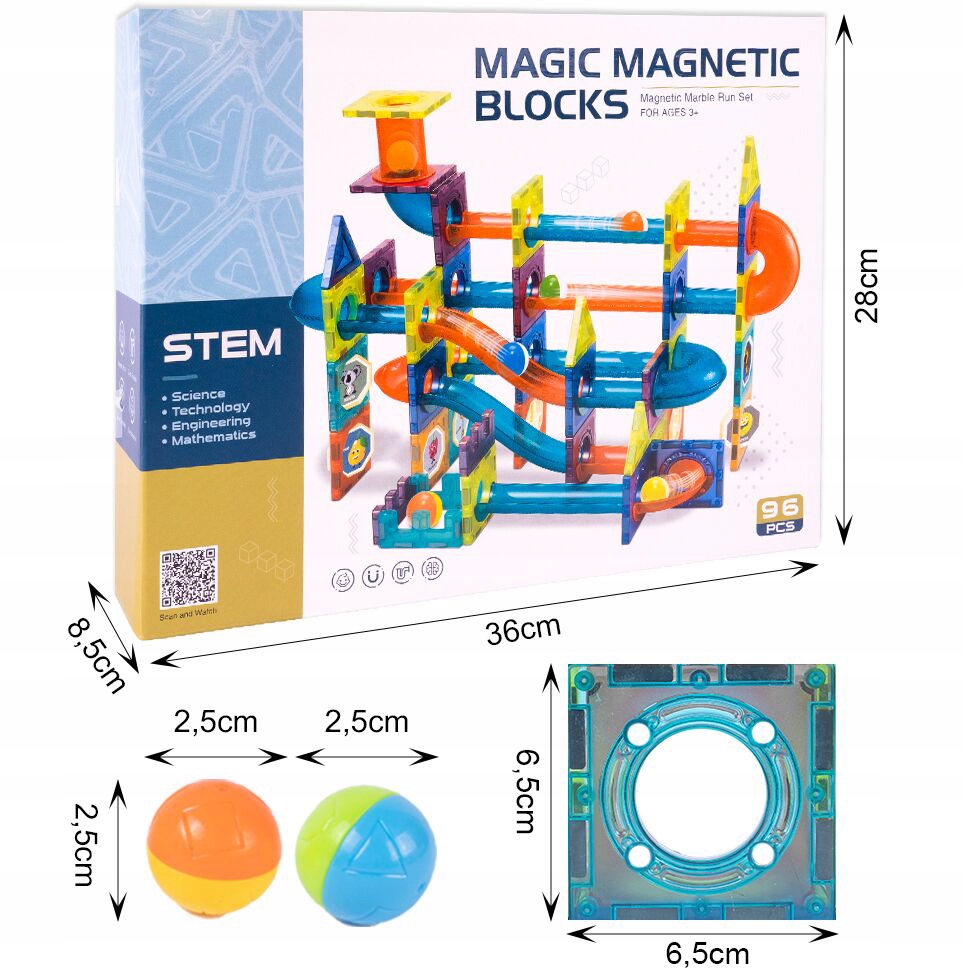 МАГНИТНЫЕ КОНСТРУКЦИОННЫЕ БЛОКИ ШАРИКОВАЯ ДОРОЖКА «MAGIC MAGNETIC BLOCKS 96 ШТ»