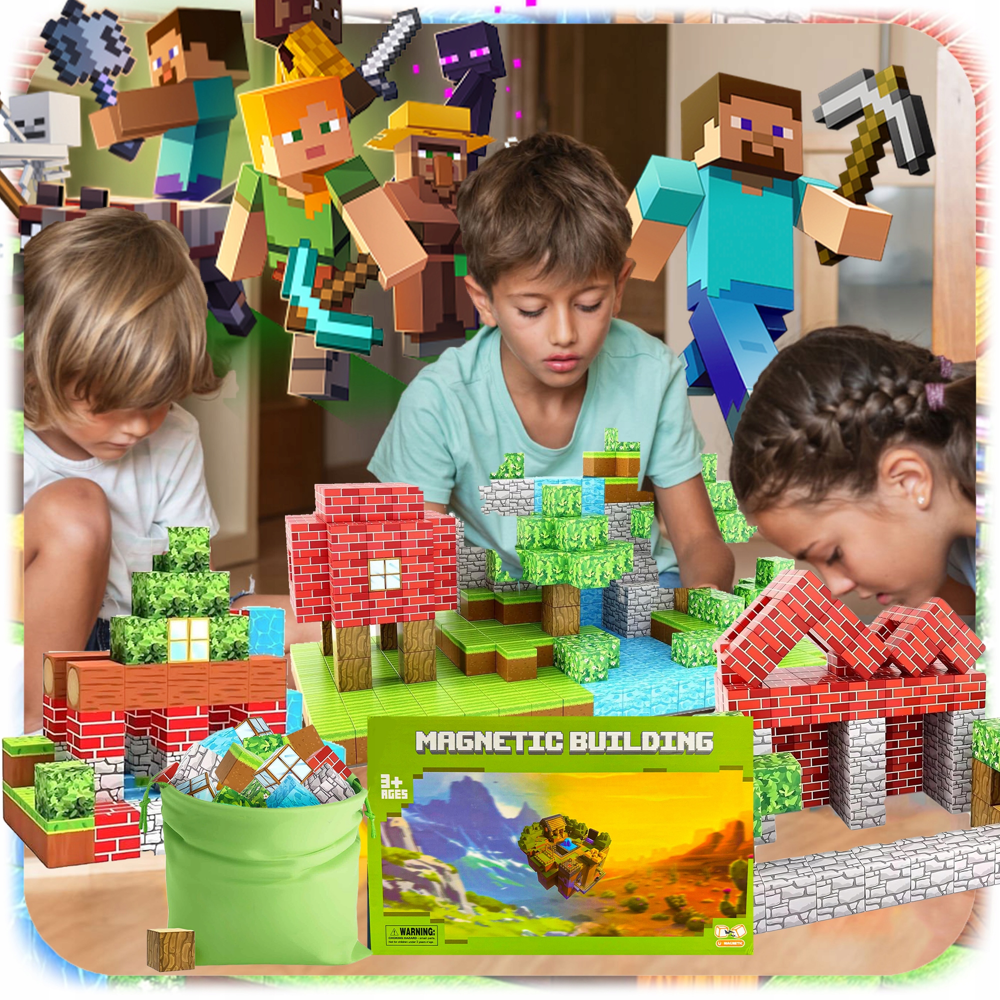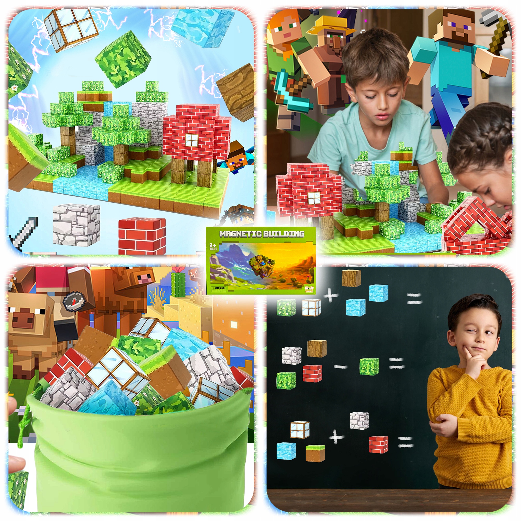 Каждый блок имеет реалистичную графику, изображающую землю, траву, воду, кирпич, дерево, листья или камень, что позволяет создавать сотни уникальных комбинаций! Дети могут строить дома, водопады, леса и целые города, развивая при этом воображение, концентрацию и навыки ручного труда.