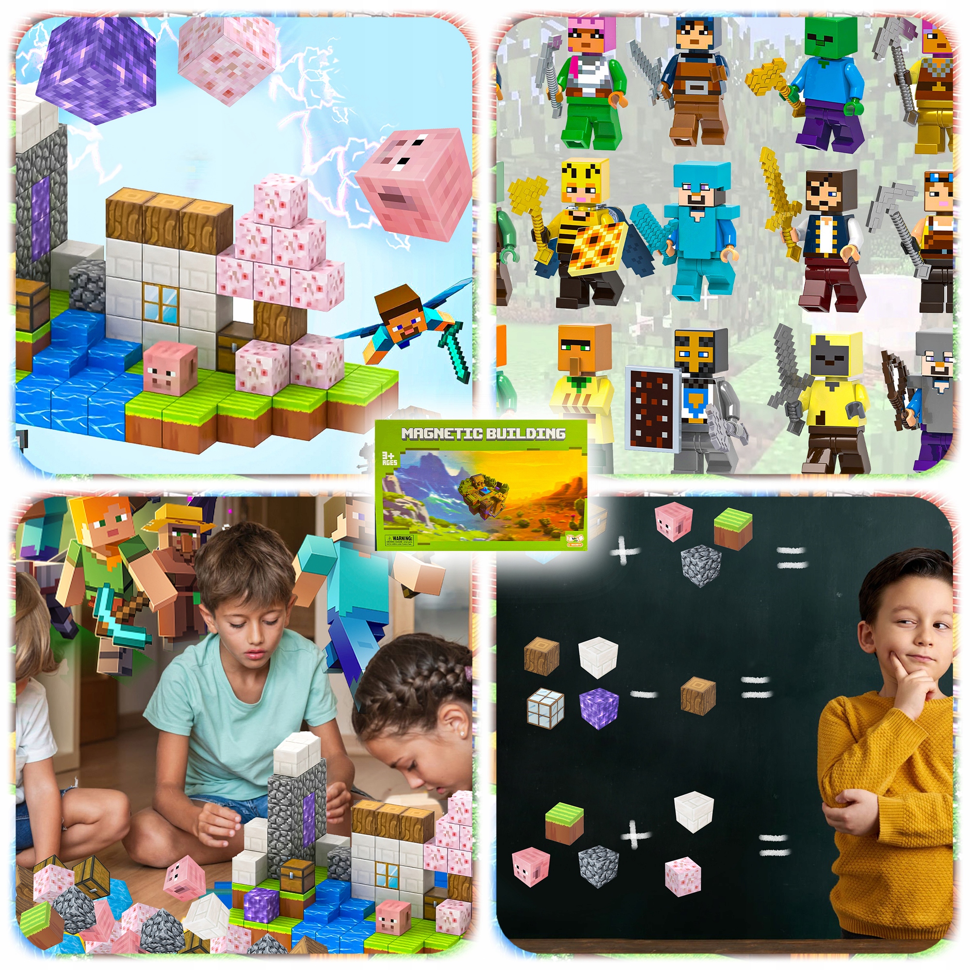 Набор позволяет детям развивать воображение, мануальные навыки и логическое мышление. На каждом блоке есть пиксельный отпечаток, на котором изображены, среди прочего: трава, вода, дерево, камень, сундук, стекло, аметист, кварц и даже свинья 🐷!