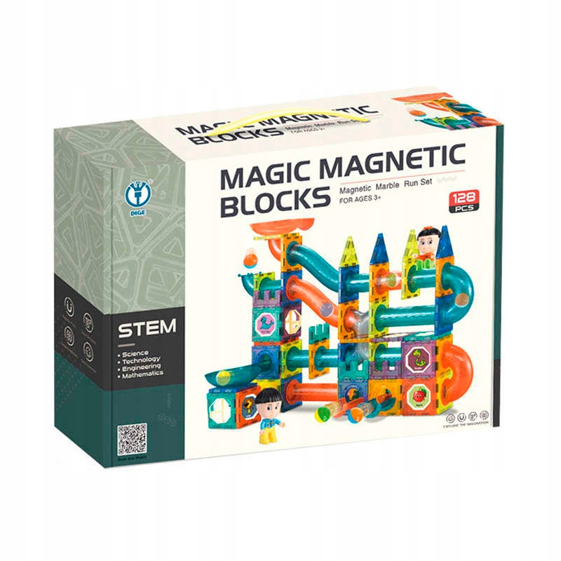 - 128 элементов конструкции, в том числе: магнитные блоки, шарики, наклейки.