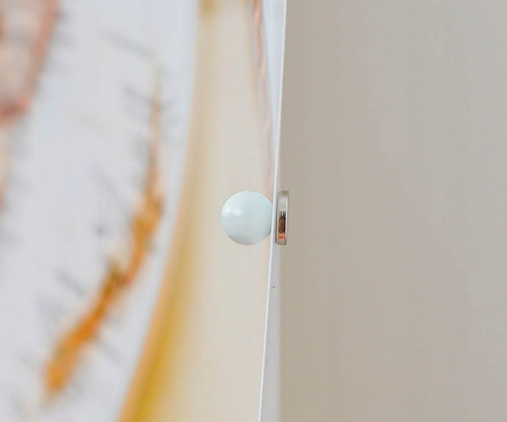 Шарики и диски представляют собой сильные магниты, благодаря которым маркер прочно и надежно удерживается на вертикальной поверхности листа. Интересное решение, позволяющее отмечать места на свернутой настенной карте с помощью магнитов, что до сих пор было возможно только с гораздо более дорогими магнитными картами.