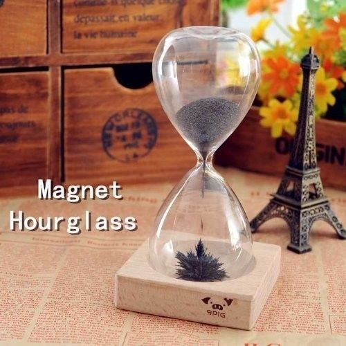 Песочные часы ручной работы изготовлены из стекла, наполненного намагниченными опилками. Время заливки 60 секунд. Опилки падают медленно и каждый раз образуют интересные, разные формы. Это связано с магнитным зарядом, присутствующим в каждом из них. Если вы захотите получить новую форму, просто поверните песочные часы на 180* и снова отсчитайте целую минуту. Магнитные песочные часы имеют изящное деревянное основание.