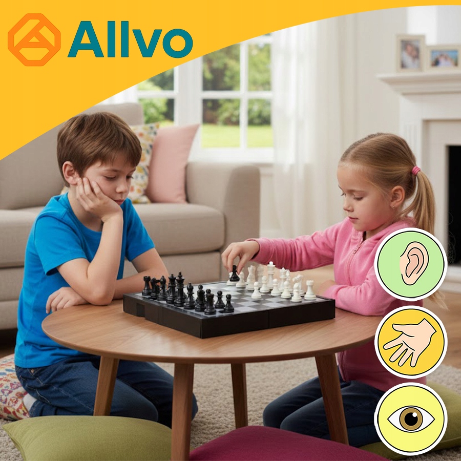 Набор Allvo 3-в-1 сочетает в себе три классические игры — шахматы, шашки и нарды — на одной практичной магнитной доске, обеспечивая развлечение для всей семьи. Прочная конструкция и тщательно продуманные элементы делают игру удобной, прозрачной и чрезвычайно увлекательной.