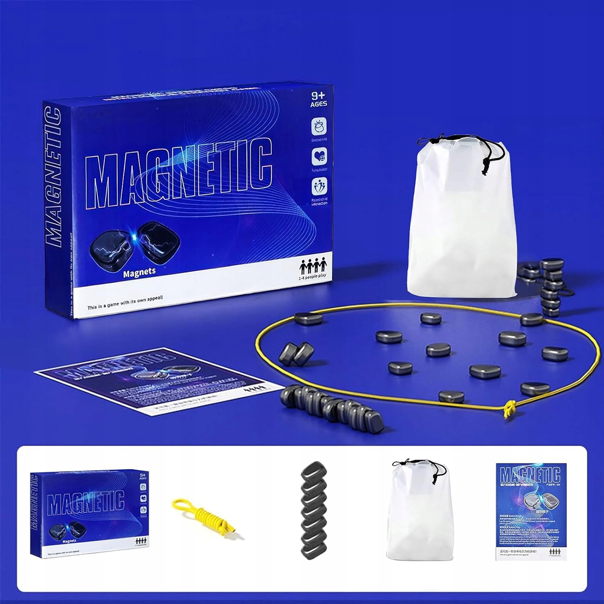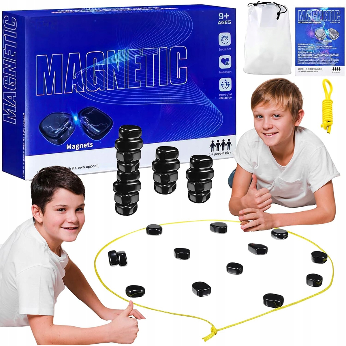 3️⃣ Стратегическое мышление: если магниты случайно соединятся во время движения, активный игрок должен собрать их обратно в свой пул. . Победителем станет тот, кто первым избавится от всех магнитов.