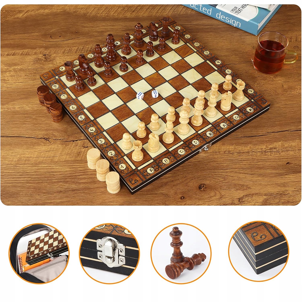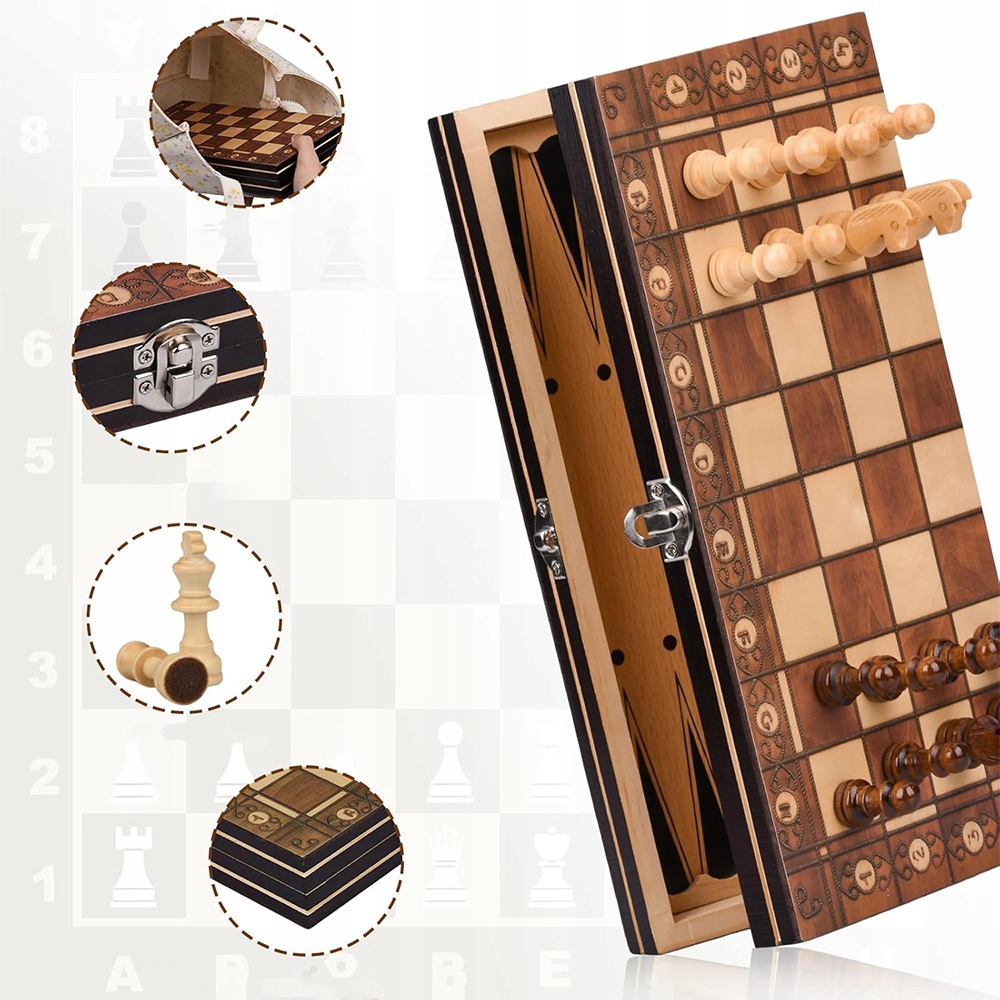 МАГНИТНЫЕ СКЛАДНЫЕ ДЕРЕВЯННЫЕ ШАХМАТЫ 3 В 1 ДЛЯ СЕМЕЙНОЙ ИГРЫ