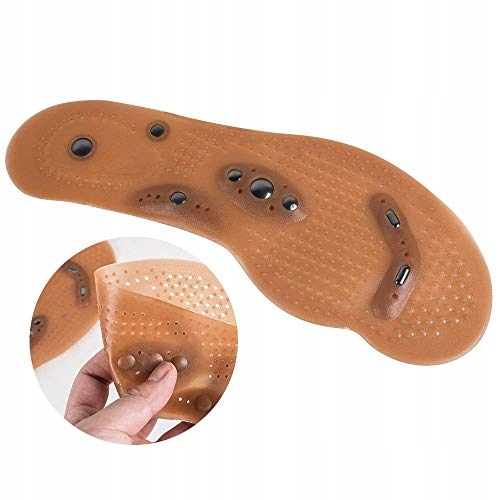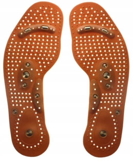 Использование магнитных вкладышей для обуви дает двойной массажный эффект: механический и магнитный. Создаваемое магнитами магнитное поле в сочетании с соответствующей структурой стельки обеспечивает глубокую стимуляцию рецепторов стопы.
