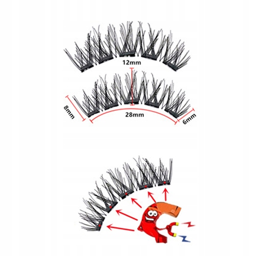 Низкий магнит размещается на верхней части настоящих ресниц.