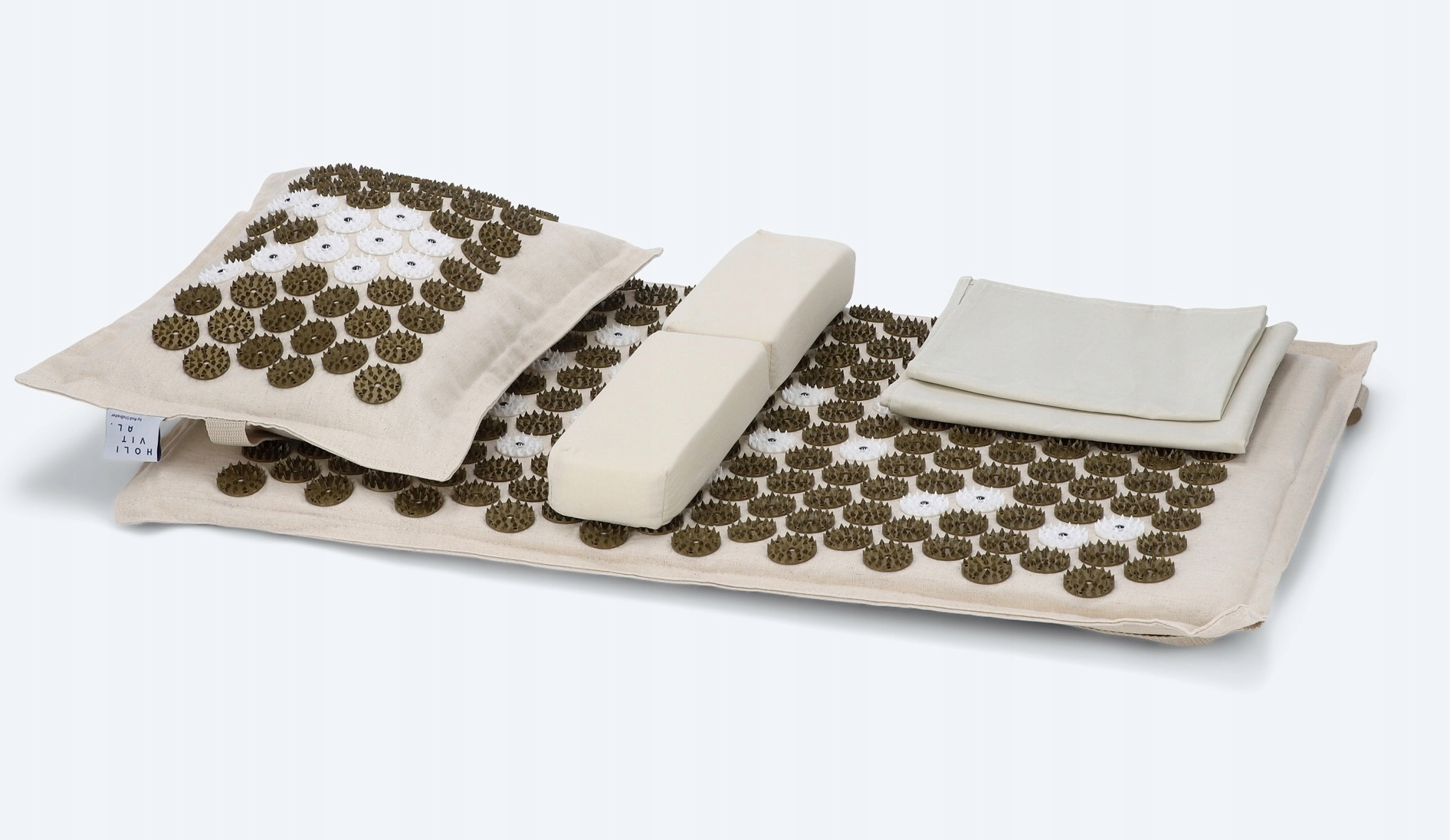 Многие физиотерапевты и специалисты традиционной китайской медицины рекомендуют коврик для точечного массажа, например, для облегчения проблем с шеей и спиной или снятия мышечного напряжения. HOLIVITAL предлагает полный набор, состоящий из коврика для акупрессуры, подушки для акупрессуры, подушки давления и двух полотенец.