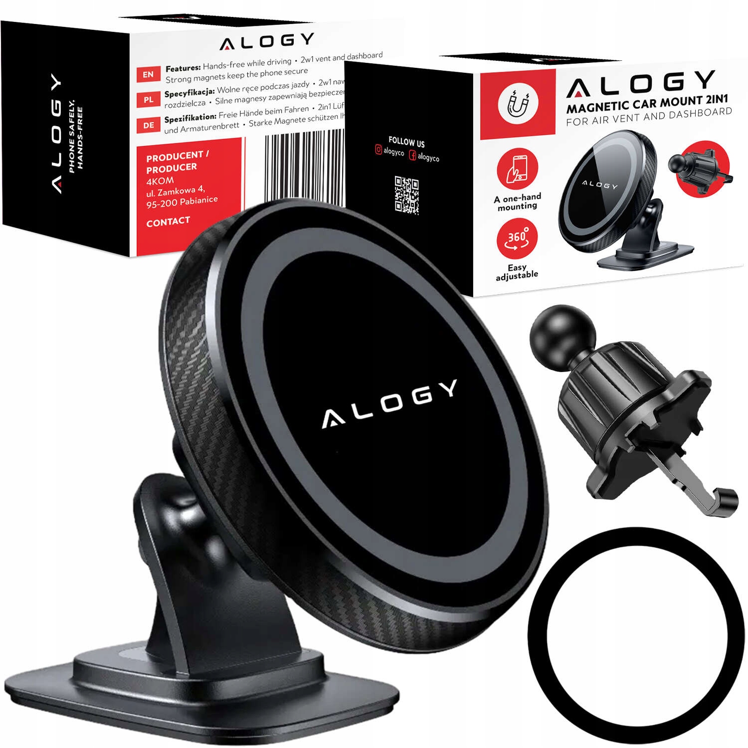 ⭐Alogy магнитный автомобильный держатель, специально предназначенный для устройств Apple iPhone со встроенной технологией Mag Safe и на все другие устройства после предыдущей установки магнитного кольца или магнитного чехла.