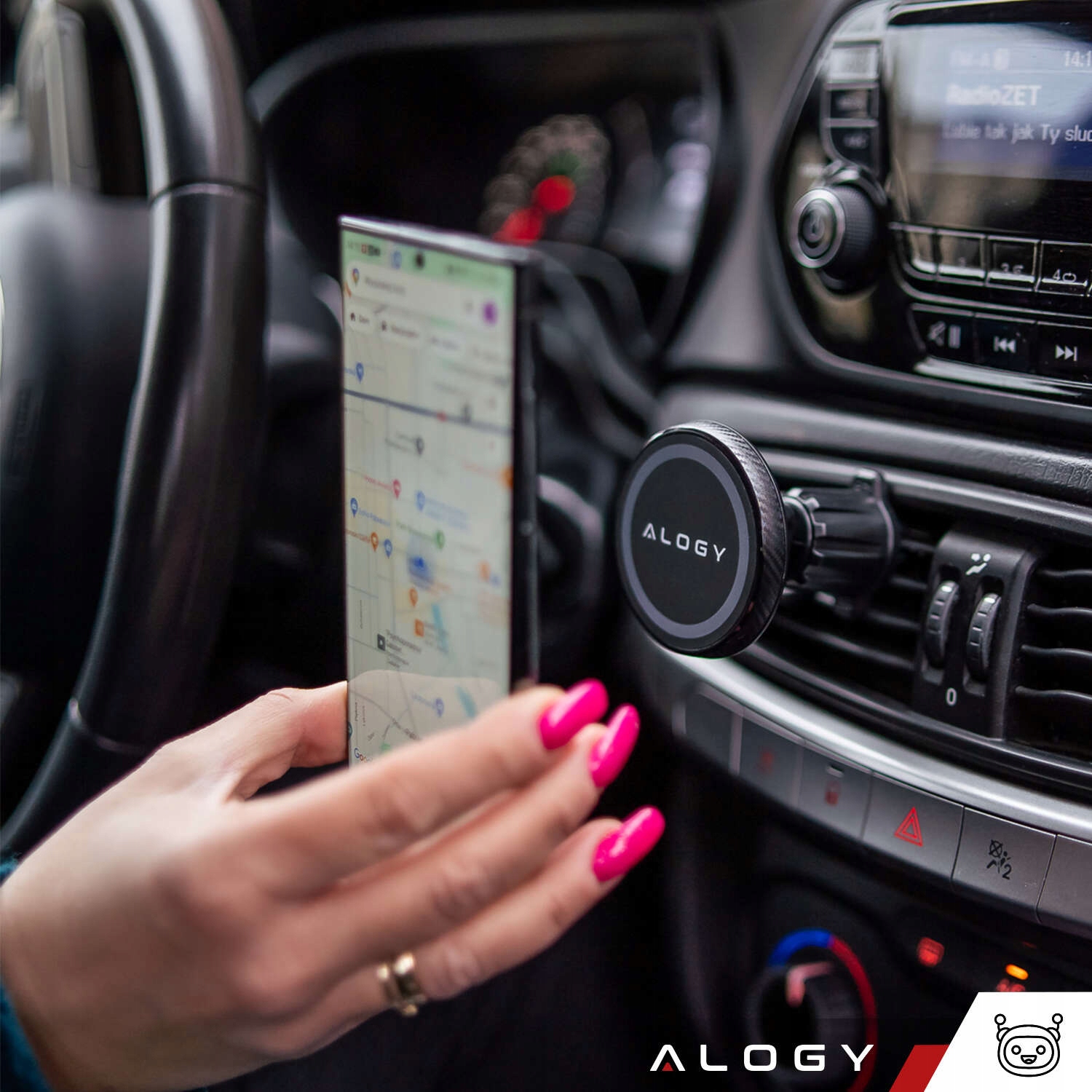 Держатель Alogy обеспечивает оптимальное расположение телефона для обзора водителя, позволяет работать одной рукой, сводя к минимуму отвлечение от дороги. Кроме того, сильные магниты гарантируют стабильную установку, что обеспечивает безопасное путешествие.
