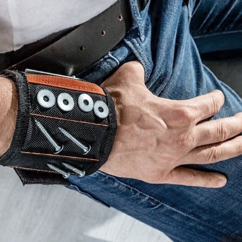 Браслет Мастера - это браслет с вшитыми магнитами на на которые можно прикрепить небольшие металлические предметы, необходимые для рукоделия или работы. Все винты, гайки, биты и головки — все в одном месте и готово к использованию! Больше не нужно бежать в другой конец мастерской за недостающим гвоздем! Прикрепите его к повязке!